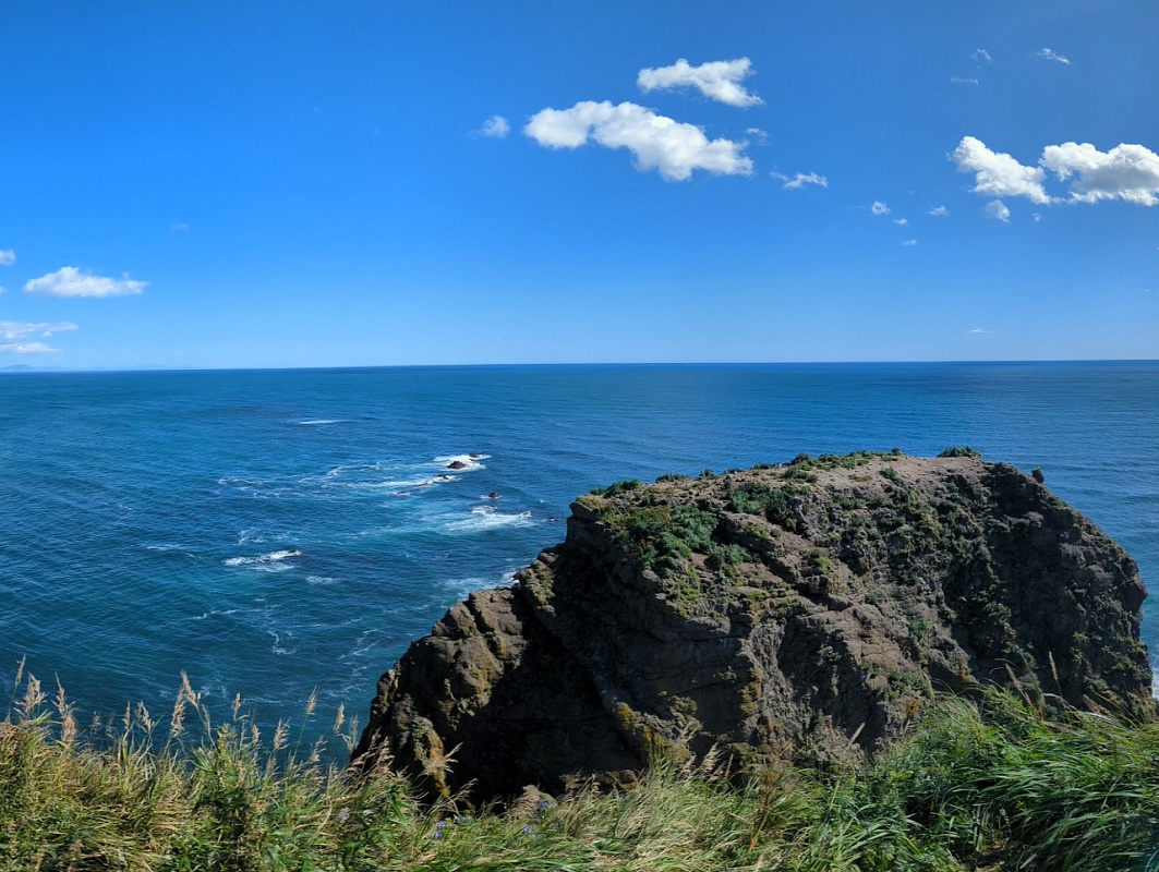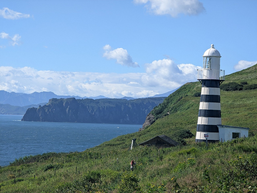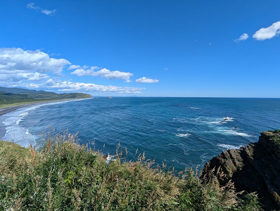 Мыс Вертикальный – с той точки открываются великолепные виды на Тихий океан, берег которого известен своим черным вулканическим песком. На обрывистых берегах можно наблюдать гнездящиеся колонии чаек и бакланов. Возвращение по пути подхода.