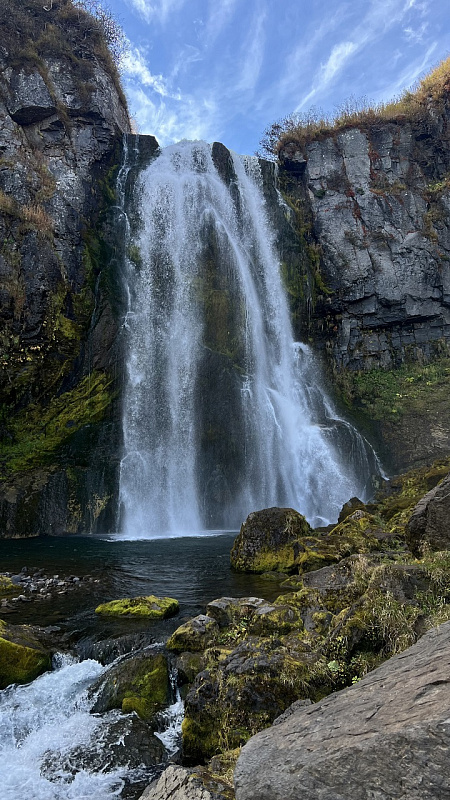 Переход по дороге 2км, далее по тропе 500м. Маршрут к водопаду имеет крутые участки, особое внимание требуется во время дождя. К водопаду можно подойти. Возвращение по пути подхода.